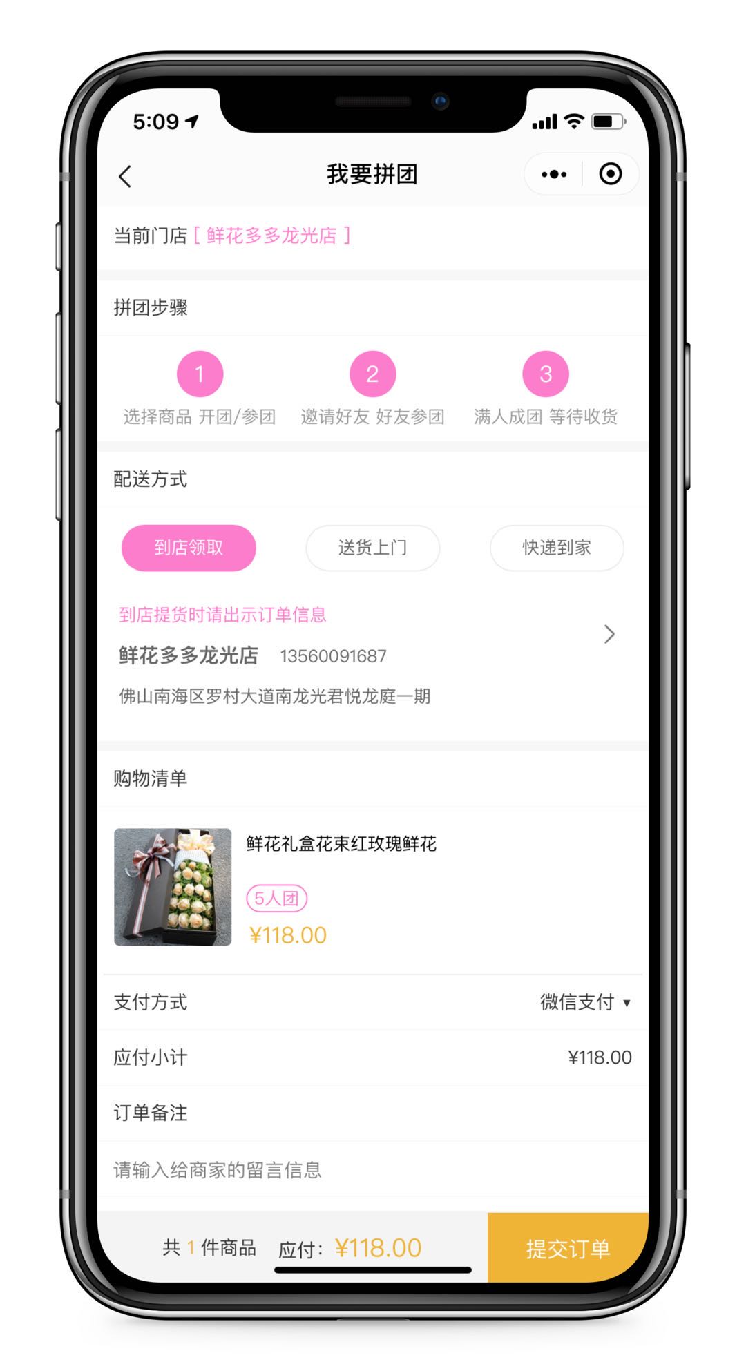 • 拼团下单