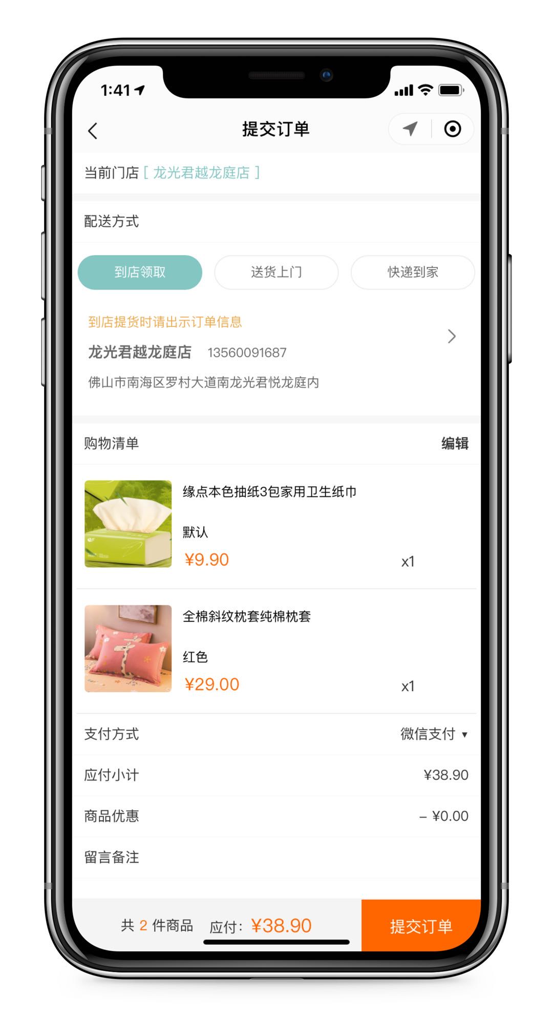 • 门店提货